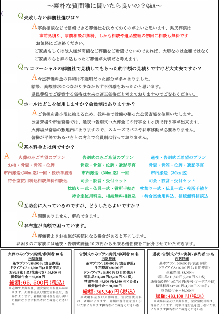こちらが県民葬祭のチラシになります、是非拡大してゆっくりと見てください。